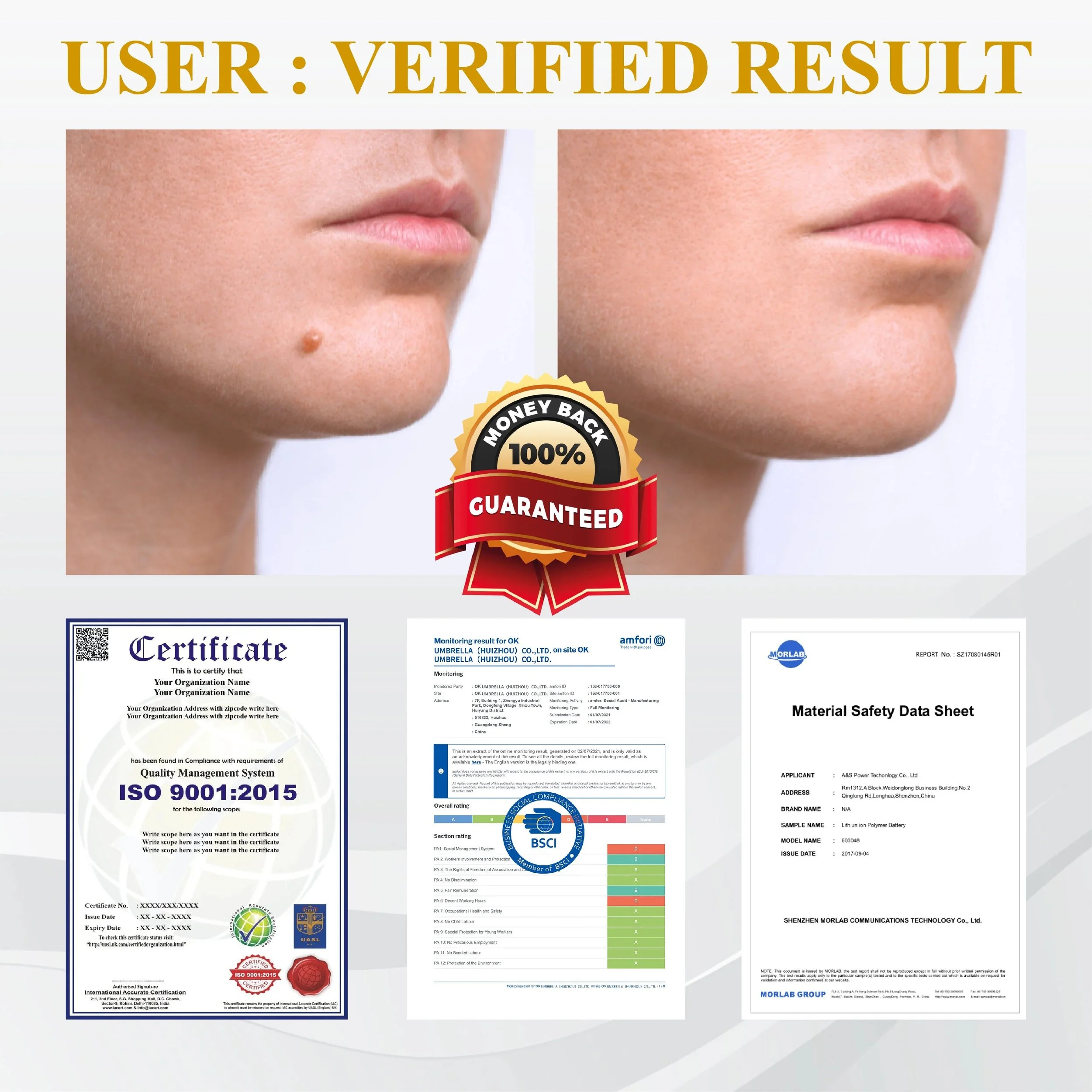 Based on raw ingredient properties. 100% of users in a consumer study reported visible improvements.